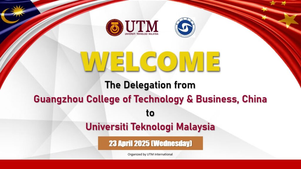 April 23 @ 10:00 am - 11:30 am Delegates from Guangzhou College of Technology & Business, China UTM International, UTM