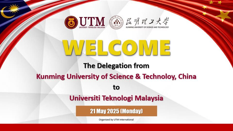 May 21 @ 10:00 am - 11:00 am Welcome The Delegates From Kunming University of Science & Technology, China Bangunan Canseleri Sultan Ibrahim, UTM