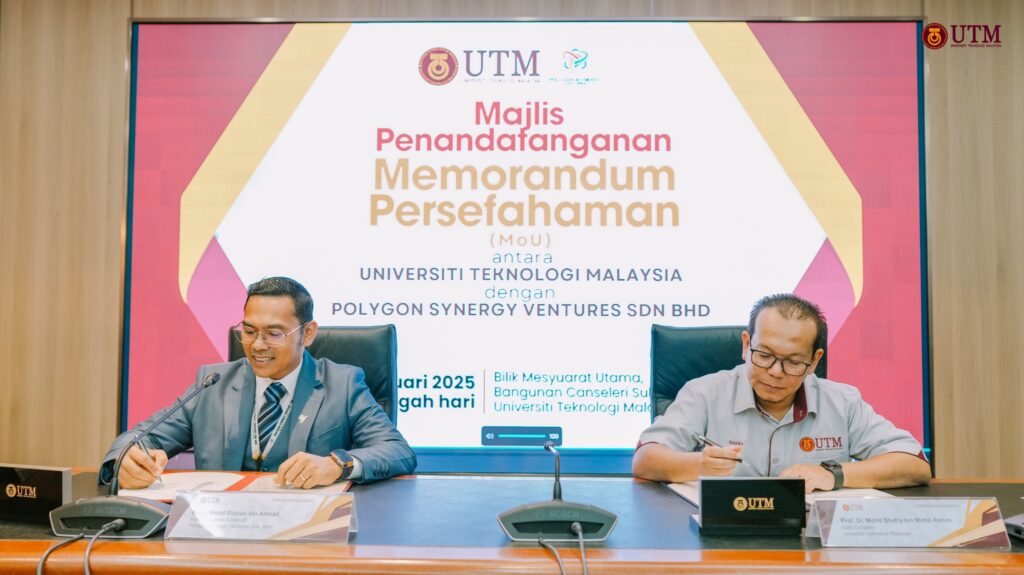 February 5 @ 12:00 pm - 1:00 pm Majlis Penandatanganan Memorandum Persefahaman (MoU) antara Universiti Teknologi Malaysia dengan Polygon Synergy Ventures Sdn Bhd