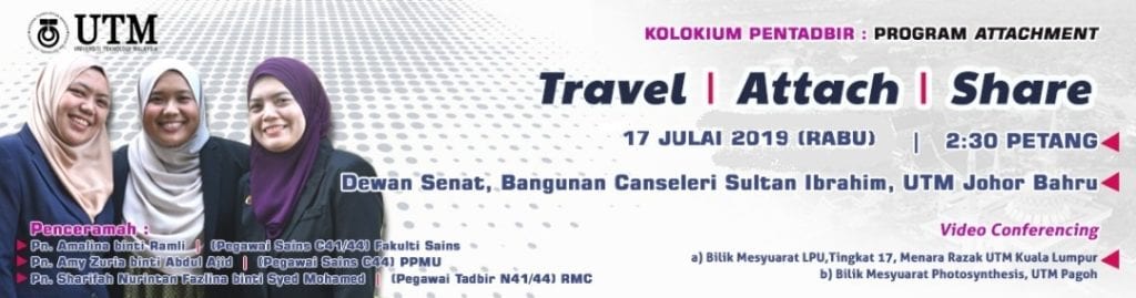 Convention Hall, B12 FABUFABU Research Motivation Program 2019 by Prof. Datuk Dr. Ahmad Fauzi Ismail (DVCRI UTM) on 4th July 2019 at Convention Hall, B12. The topic of the program is 'Research - It is never too small to start and never too big to strive for'. All academic staffs, support staffs and students are invited to attend […]