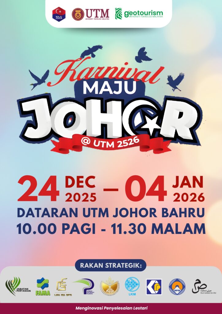 December 24, 2025 @ 8:00 am - January 4, 2026 @ 5:00 pm Karnival Maju Johor @ UTM 2526 Dataran UTM Johor Bahru