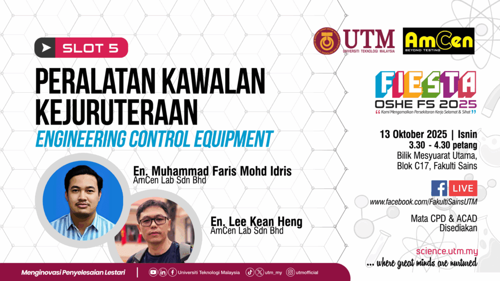 October 13 @ 3:30 pm - 4:30 pm Peralatan Kawalan Kejuruteraan Bilik Mesyuarat Utama, Blok C 17, Fakulti Sains