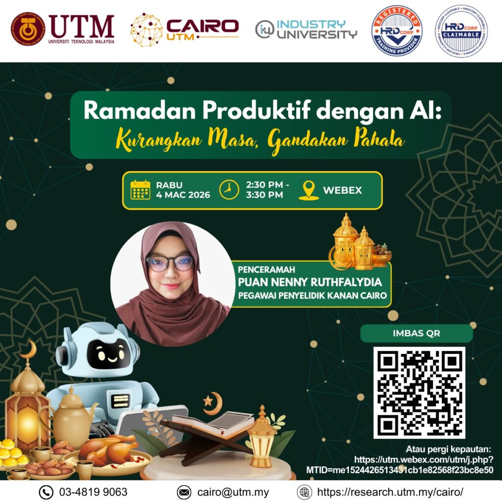 March 4 @ 9:00 am - 1:00 pm Wacana Intelektual Madani 2026 : Persiapan Ke Arah Negara AI 2030: Sektor Pembuatan Sebagai Pemangkin Dewan Seminar, Anjung Menara Razak, UTM KL