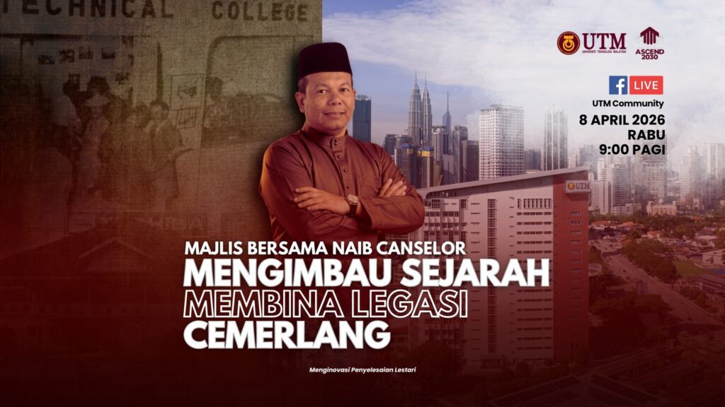 April 2 @ 9:30 am - 10:00 am Taklimat Penjajaran Strategik 2026 Timbalan Naib Canselor Akademik dan Atarabangsa : Memperteguh Arah, Memacu Impak Dewan Senat Ainuddin Wahid, BCSI, UTM Johor Bahru